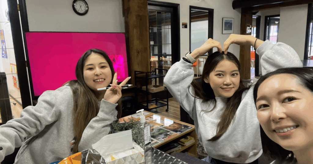 緊張していてもいろんな人が話しかけてくれるし、困ったことがあってもスタッフに相談しやすい環境です。人見知りな私でも気づいたらたくさん友達ができていました!