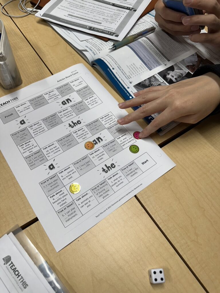 教科書はあるのですが、最初3,40分はペアになって先生が出したお題についてディスカッションし発表したりしました。後半は教科書に沿って授業を行います!